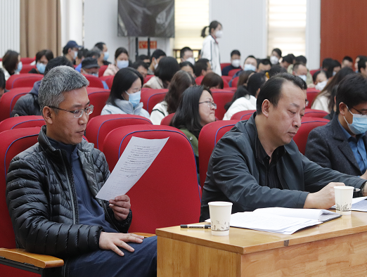 党委书记苏楠,院长陈振,副院长赵亚芳、李晔、乔红波和全体教职工参加大会。会议由院党委副书记蔡镔主持。