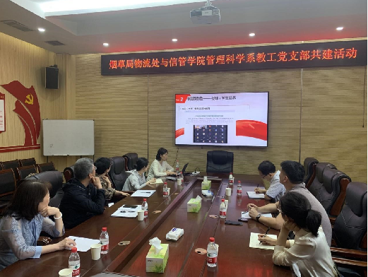 活动最后,管理科学系教工党支部书记刘盼分享了党建工作经验、学科建设情况,潘雯雯老师介绍了学科团队在供应链与物流管理方面的研究进展和应用成果。省烟草局物流处党支部书记罗恒从四个方面分享了学习贯彻习近平新时代中国特色社会主义思想的思考和感悟,参会人员就学习贯彻习近平新时代中国特色社会主义思想和党的二十大精神、展开理论创新与实践应用相结合的教学工作、促进学科前沿理论应用于实际管理问题等内容展开了热烈讨论。最后,苏楠书记对此次支部共建活动给予了肯定,对未来继续开展支部共建工作寄予厚望。