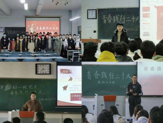 组织开展了“青春践行二十大”主题班会教育活动,旨在引导同学们在新学期奋进新征程,建功新时代,争做有理想、敢担当、能吃苦、肯奋斗的新时代好青年。院党委副书记蔡镔、年级辅导员和各班班主任参与到主题班会中。