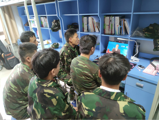 领导班子及中层干部于教学楼A座405进行集中学习,全体学生以宿舍为单位自学观看。