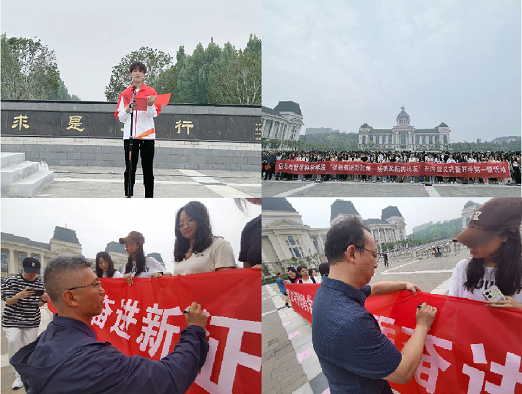 全体师生在活动主题横幅中写下新学期寄语并签名留念。