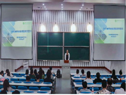 于龙子湖校区大教室2举办2023届毕业生大会。银河App