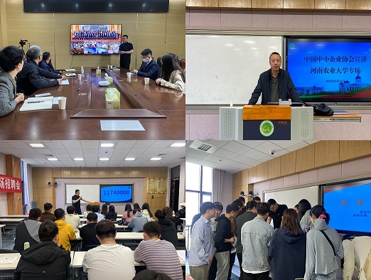 领导班子和受邀嘉宾于繁塔楼A405举行了座谈会。陈振对受邀宣讲单位的到来表示感谢。协会主任孙磊结合PPT对中国中小企业协会的基本情况、组织体系、协会文风、历史文化、功能定位、产业发展和人才生态等方面做了详细介绍。
