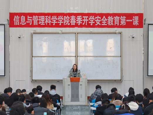 于龙子湖校区教学楼大教室4开展了春季开学安全教育第一课暨2019级年级会活动,2019级全体同学分专业、分批次参加会议。本次会议由院团委书记、2019级辅导员老师张玥主持。