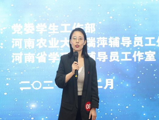 自9月大赛启动以来,张玥老师不忘“立德树人,启智润心”之初心,牢记“守护梦想,奉献担当”之使命,以心中常有爱,眼里总有光的高度责任感和使命感积极备赛,经过理论笔试、谈心谈话、案例研讨三个环节的重重考验,脱颖而出,以优异的成绩进入校决赛。决赛现场,张玥老师以坚守理想信念为主题,以长征中的革命先烈事迹为例证娓娓道来,充分向评委老师阐述了自己的教育理念:怎样正确引导新时代青年牢记使命、勇于担当,指引他们走好时代新征程,是每位辅导员的必修课。随后,张玥老师介绍了近年来银河App