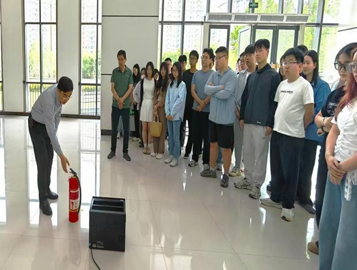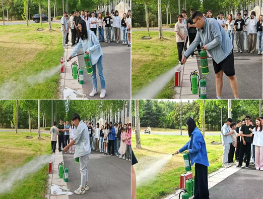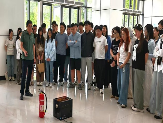 随后,林声远详细讲解了灭火器的种类、使用方法以及注意事项,并亲自进行了操作演示,确保每一位研究生都能清晰地了解灭火器的正确使用方式。