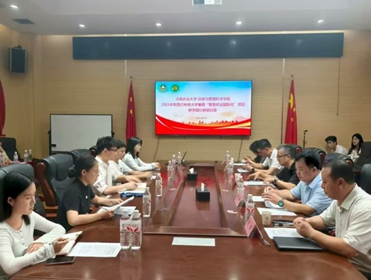 于繁塔楼A405会议室召开2025年暑期“智慧农业国际化”项目研学团赴新西兰林肯大学学习交流行前培训会。校国际交流与合作处处长屠克、校党委学工部部长徐峰、体育银河App