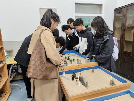 心理健康教育中心的发展历程、专业师资配置,并详细说明心理咨询的预约时段与操作流程,帮助同学们快速建立对心理健康服务的基础认知。随后,在讲解员的引导下,同学们依次走进桌游娱乐室、沙盘咨询室与音乐放松室,近距离接触各类专业心理服务空间。参观过程中,同学们热情高涨,主动参与心理设备体验,在亲手操作与真实感受中,直观体会到心理健康服务的多元形式与实际效用,更在互动中深化了对心理健康本质的理解,树立起科学的心理健康观念。