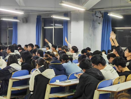 随后,集训队成员王浩宇组织新生问答互动。活动中,同学们全程专注聆听,不仅主动提出疑问,在互动答题环节更踊跃参与、积极响应,现场氛围热烈高涨,充分展现出对算法竞赛的浓厚兴趣。