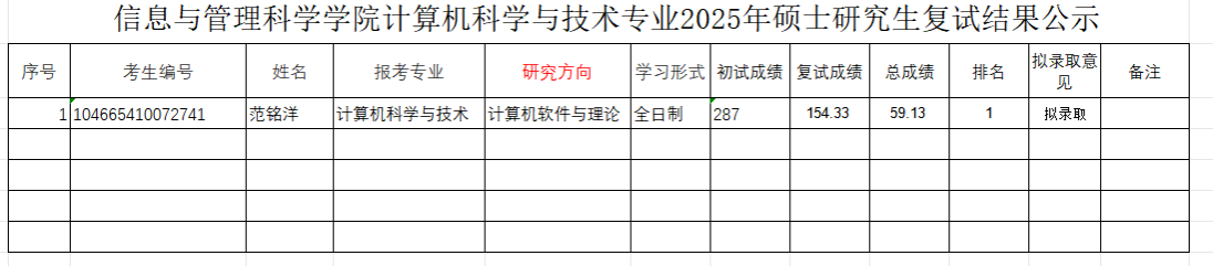 银河App 计算机科学与技术专业2025年硕士研究生招生一志愿考生复试录取工作已经结束,银河App 一志愿复试结果公示如下,公示期至2025年4月8日。请对录取结果进行监督。