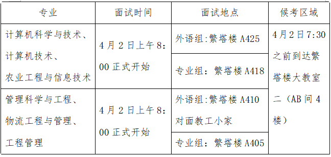4月1日上午8:00—11:00考生携带资格审查材料原件及复印件到繁塔楼A410办公室进行资格审查。
